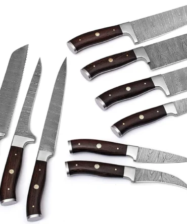 Damascus Chef Knife Set – Premium Wenge Wood Handle with Leather Roll Bag