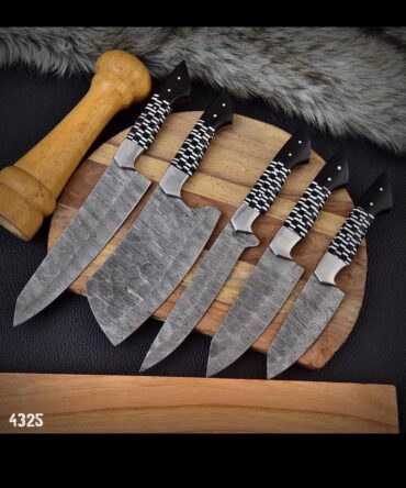 5-Piece Hand Forged Damascus Steel Kitchen Knife Set with Black & White Resin Handles