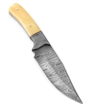 Classic Custom Damascus Hunting Knife – Bone Handle, Damascus Bolster & Premium Leather Sheath
