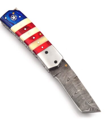 Hand Forged Damascus Steel Folding Knife with American Flag Handle