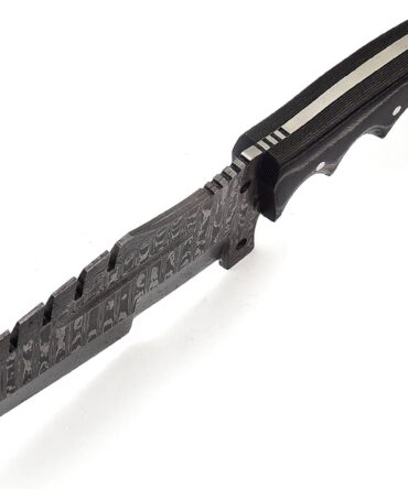 Hand Forged Damascus Steel Tracker Knife with Black Micarta Handle & Multi-Carry Leather Sheath