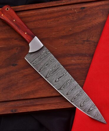 Hand-Forged Damascus Steel Chef Knife – Red Padauk Wood Handle & Stainless Bolster