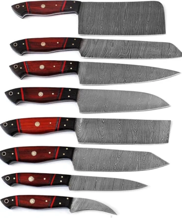 Handmade 8-Piece Damascus Steel Chef Knife Set – Professional Kitchen Knives with Leather Roll Bag (Copy)