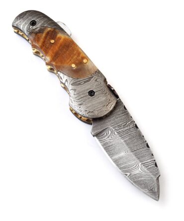 Hand-Forged Damascus Back Lock Folding Knife – Ram Horn Handle & Damascus Bolster