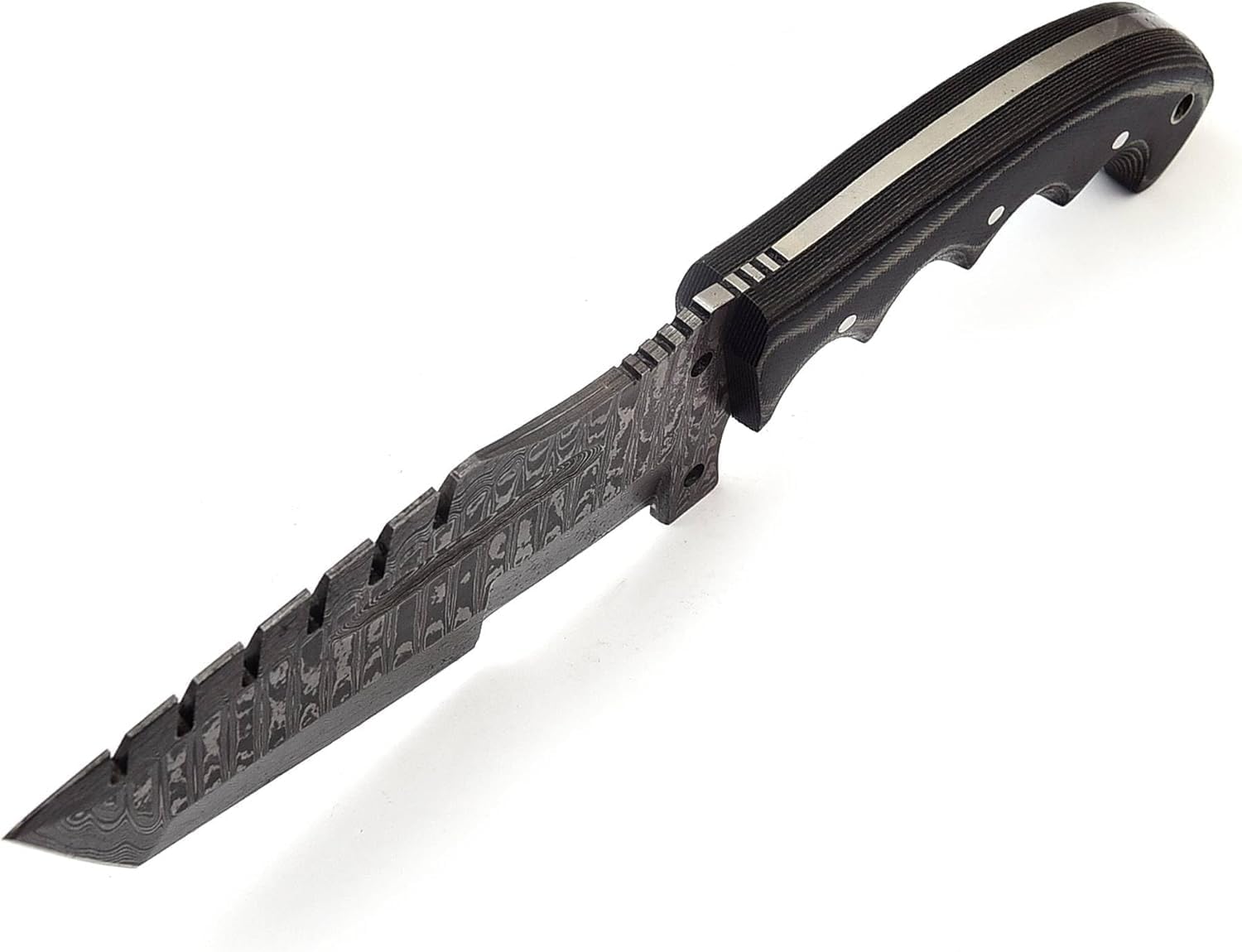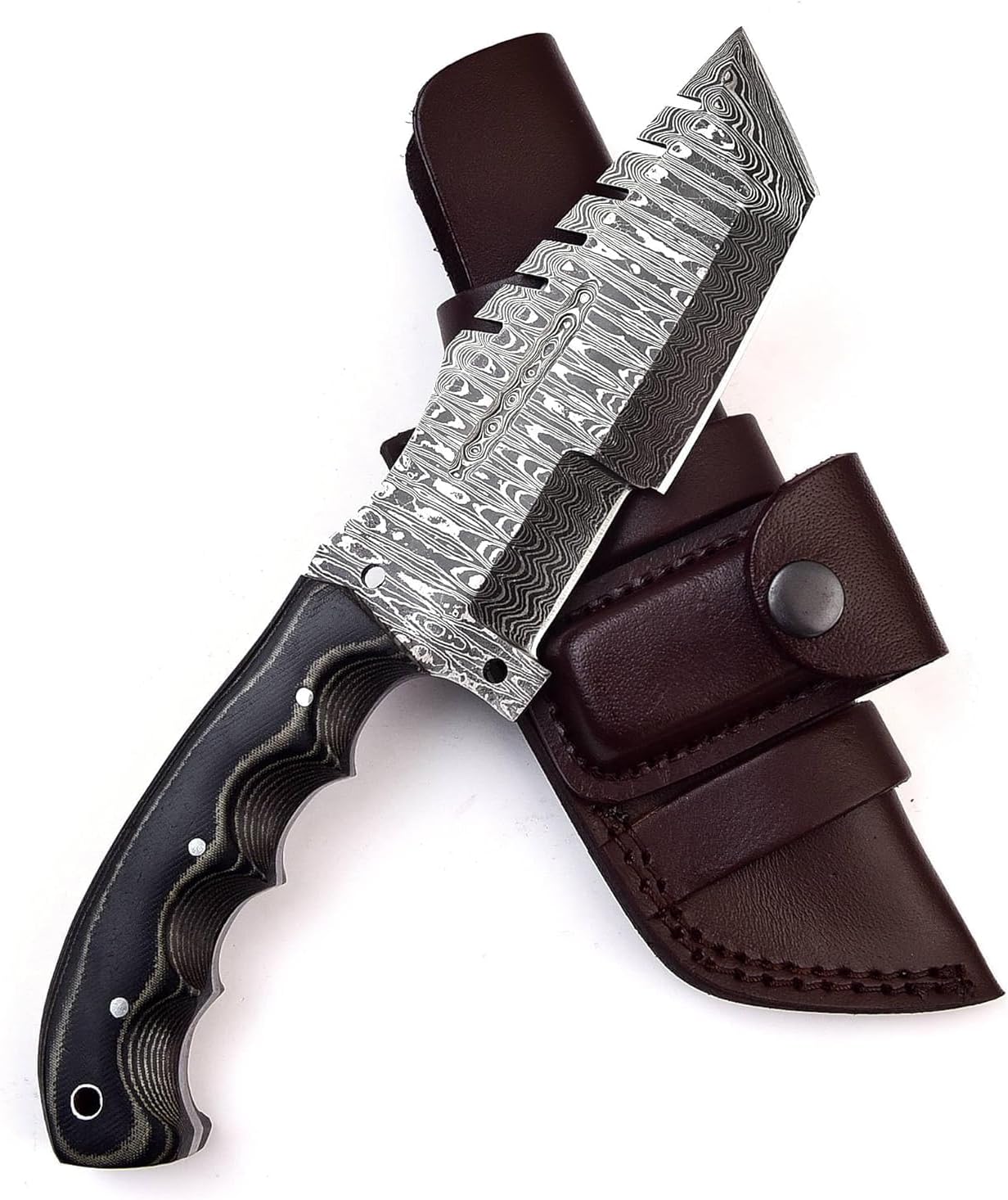 Call to Action: Prepare for the wilderness with this powerful Damascus Steel Tracker Knife. Invest in the ultimate Black Micarta survival tool and Leather Sheath today!