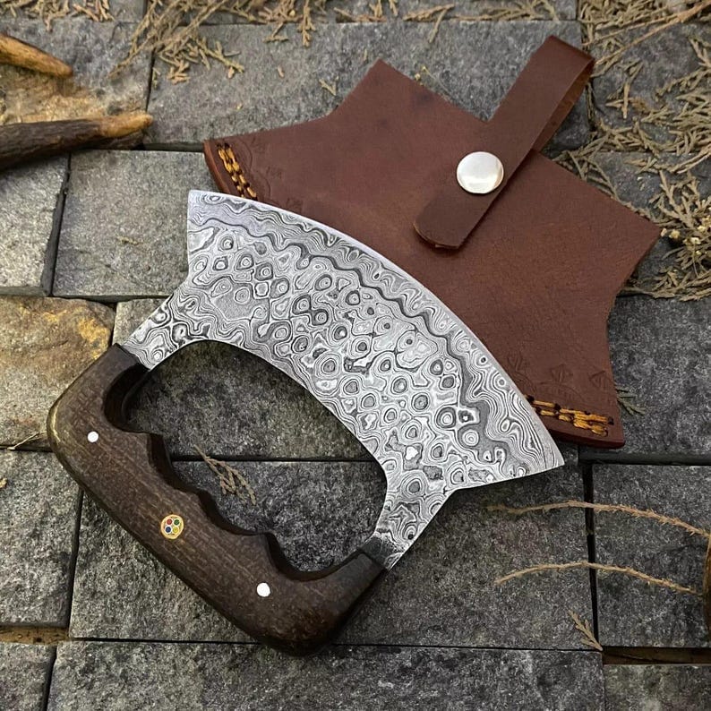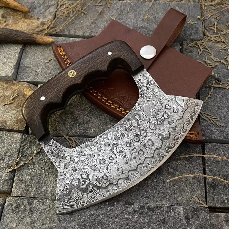 The crescent shape, a classic Ulu Knife design, is naturally ergonomic, allowing for a swift, rocking motion that drastically reduces the effort required for chopping. This makes it an incredibly versatile alternative to a standard chef’s knife or mezzaluna. Whether you’re processing large cuts of meat or mincing garlic, this Damascus Chopper is designed for power and precision.