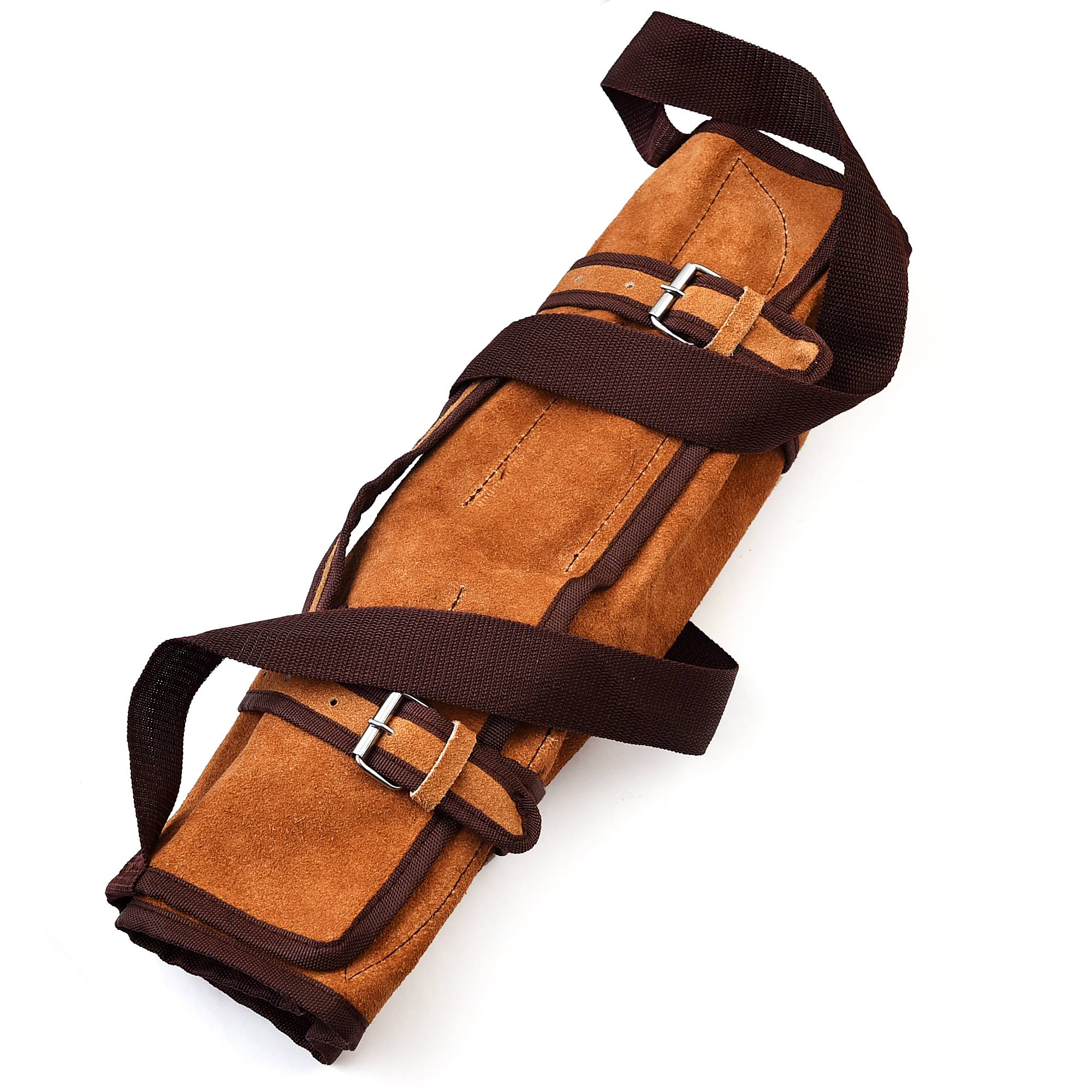 The Carry System: Premium Leather Roll Bag The entire 8-piece set is protected in a durable, high-quality Leather Roll Bag. This storage solution keeps the blades safe, organized, and allows for professional, secure transport.