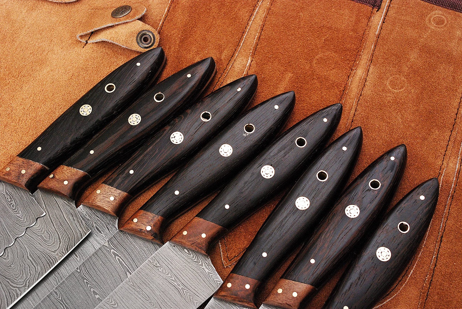 Be the first to review “Professional Hand Forged Damascus Steel Chef Knife Set with Wenge Wood Handles & Leather Roll Bag”