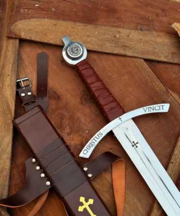 Medieval Crusader Sword with Leather Scabbard – Hand-Forged Knight’s Sword